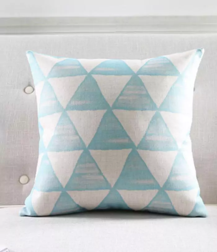 Avec ses tons doux, la nouvelle collection de housses de coussin bleu géométrique arrive sur mycoussin.fr